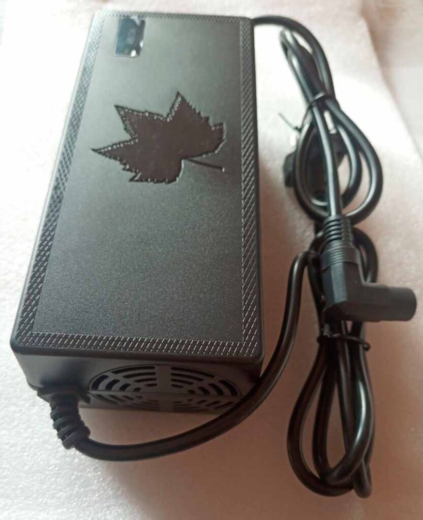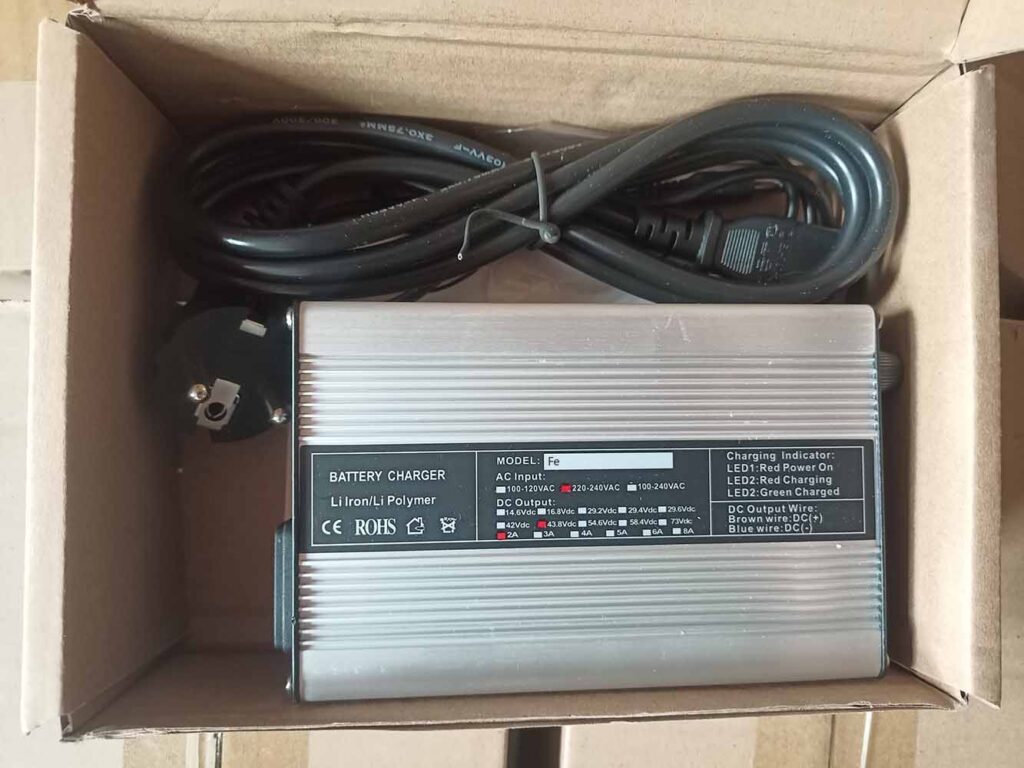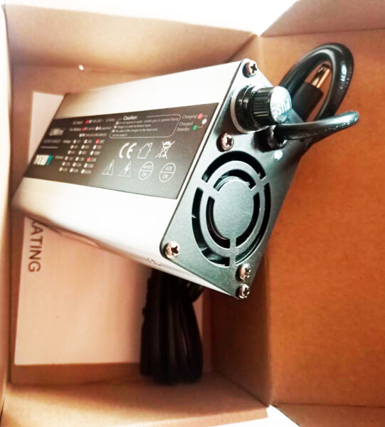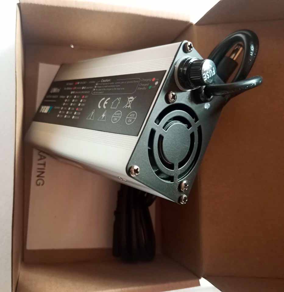 4. Замечательное зарядное устройство на 36 и 48в фирмы «Rohs» с принудительным охлаждением в пластиковом корпусе. Оно не греется и служит очень долго.